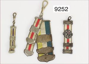 Lot: 2 x Taschenuhrenschlüssel, 1 x Metall mit Ratsche, 1 x Metall mit Schmuckstein