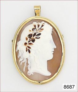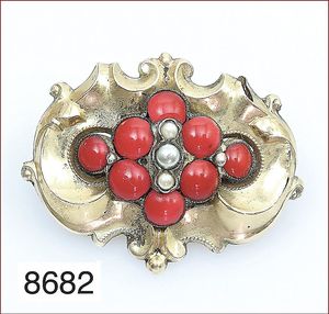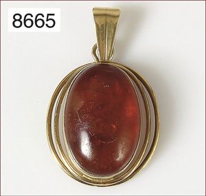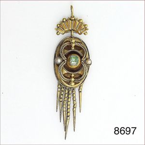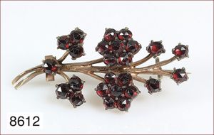 Lot: Granatanhänger mit GG 333/000 Schlaufe, H = 40 mm und Brosche, Metall, D = 42,5 mm
