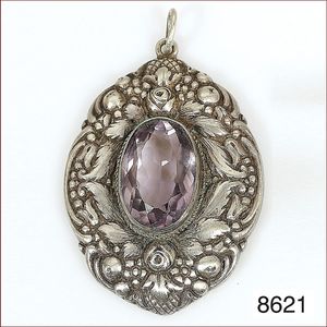 Anhänger, 20/30er Jahre, Ag 835/000, Amethyst ca.20 ct, sehr schön ausgearbeitetes Ornament, kräftig verarbeitet, 40 x 53 mm (ohne Schlaufe), total 20 g