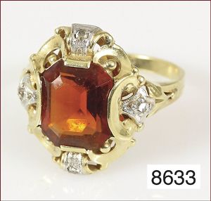 Ring, GG 585/000, Madeira Topas, 4 Diamantrosen weiß gefaßt, RW ca. 51