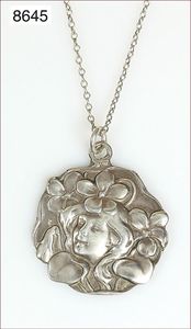 Anhänger, JUGENDSTIL, Ag 800/000, D = ca. 24 mm, Kette Ag (nicht original), L = 55,5 cm