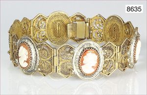 Armband, Italien 50er Jahre, AG 800/000, teilvergoldet, 6 Muschelgemmen, Glieder mit Scharnierbewegung, L = 17,8 mm