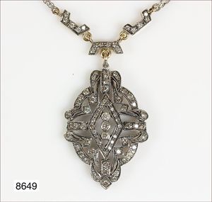 Anhänger & Kette, Art-Deco Modeschmuck, Metall, Onyx, Punze: gesetzlich geschützt Matinin, L = 47 cm