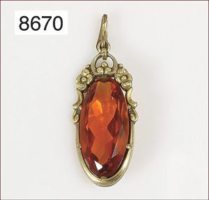 Anhänger, 20/30er Jahre, Ag 900/000 vergoldet, Citrin 18,6 x 24,7 mm, H = 36 mm