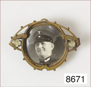 Lot: 2 Broschen, 1 Eisen-Brosche, Soldat 1. Weltkrieg, 140 Regiment, colloriert, D = 25 mm; 1 Brosche Metall verg. um 1910/20, Bild mit Offizier 2. Weltkrieg, D = 27,5 mm