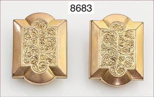 Brosche, JUGENDSTIL um 1900., Ag vergoldet, Spiegel-Granatrosen, L = 40 mm