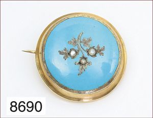 Medallion Ende 19. Jhdt., Double, emailliert mit 1/2 Perle, orig. Glas 24,5 x 40 mm