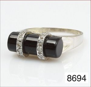 Ring, ART-DECO, Ag 925/000, ROSE-Gold Ringschiene, 2 Onyx-Platten, 20 Markasiten, RW ca. 51