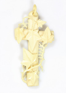 Anhänger, Anfang 20.Jhd., Kreuz aus Bein von Efeu umrangt, 84,5 x 41,5 mm