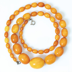 Bernsteinkette "BUTTERSCOTCH", Schließe Metall, Naturbernstein, Oliven D = 5,3 - 18 mm, L = 56 cm, total 31,7 g