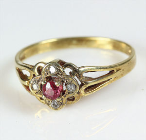 Ring, GG 585/000, 7 Rubine fac., RW ca. 55