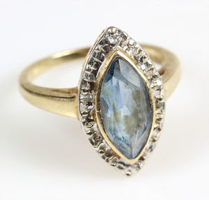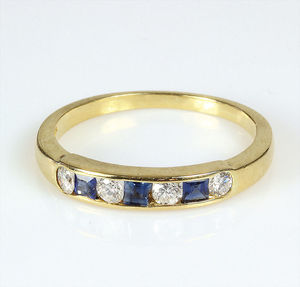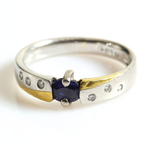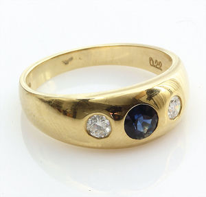 Ring, GG 585/000, Saphir fac., 2 Brillanten ca. 0,22 ct, w-si/p, RW ca. 57