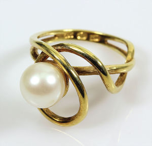 Ring, GG 585/000, Akoja-Perle ca. 8,5 mm, RW ca. 54, total ca. 5,5 g