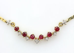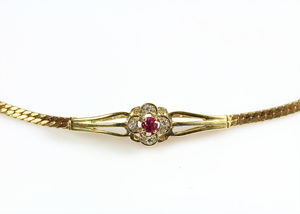 Armband, GG 585/000, 1 Rubine fac., 4 Diamanten weiß, kl. Kastenschloß mit Sicherungsacht, L = 18,6 cm, total ca. 6,2 g