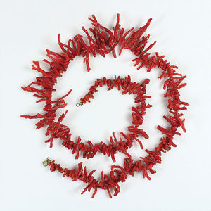 Ast-Korallenkette, Schließe Metall vergoldet, Koralle vorne ca. H = 38 mm, L = 67 cm, total ca. 68 g