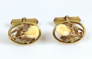 Manschettenknöpfe, GG 585/000, Grandeln mit Eichenlaubdekor, total ca. 12,7 g