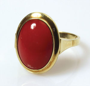 Ring, GG 585/000, Korallencab.14,0 x 10,0 mm, RW ca. 53
