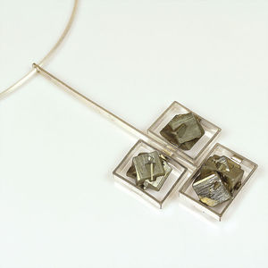 Anhänger aus den 1970er Jahren, Silber 925/000, 3 Pyrit-Kristalle, H = 11,7 cm