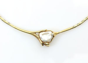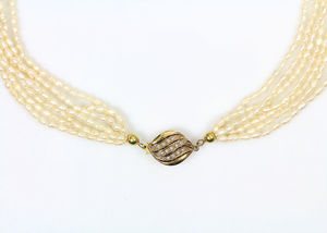 Perlcollier, GG 585/000, Biwa-Perle, Brillant ca. 0,18 ct weiß, L = 41,0 cm, total ca.16 g