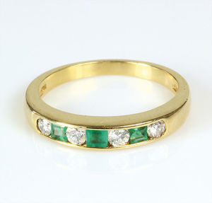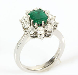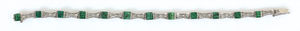 Armband, WG 333/000, 12 Smaragdrechtecke ca. 4,5 ct, 36 Brillanten ca. 0,40 ct. w-si/p, Kastenschloß mit Schnepper u. Sicherungsacht, L = 16,8 cm