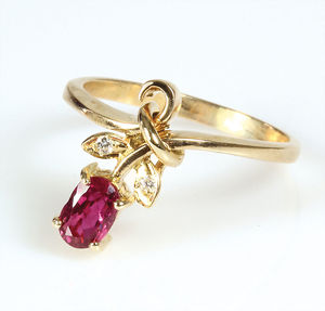 Ring, GG 585/000, Rubin fac., 4 Diamanten weiß, RW ca. 57