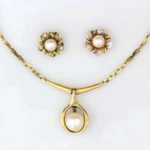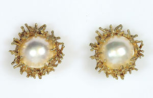 Ohrclips 60er Jahre, GG 585/000, Mabe-Perlen, D = 21,5 mm, total ca. 13,1 g