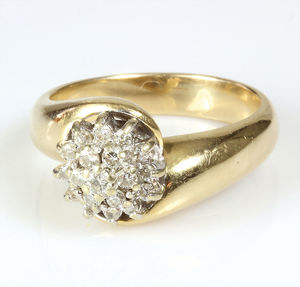 Ring, GG 585/000, 7 Brillanten/Diamanten ca. 0,21 ct weiß, RW ca. 53