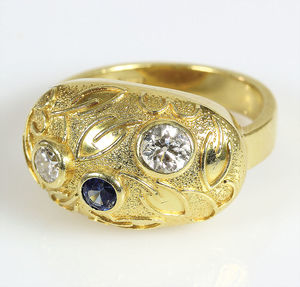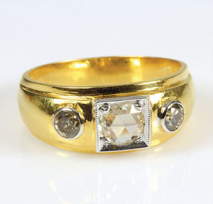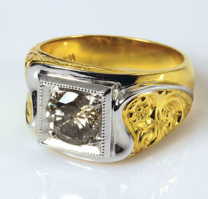Ring, GG/WG 750/000, naturfarbener brauner Brillant ca. 1,65 ct mit deutlichen Einschlüßen, RW ca. 60,5, total 15 g