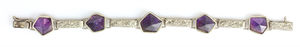 Armband, GG 750/000, 17 Rubine ca. 2,1 ct, 16 Saphire ca. 3,7 ct, 20 Brillanten ca. 0,15 ct. w-si, (Steinefassungen rhodiniert), Kastenschloß mit Schnepper u. Sicherungsacht, L = 17,8 mm