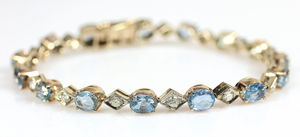 Armband, WG 585/000, 4 Saphirnavettes fac. ca. 0,50 ct, 8 Diamanten ca. 0,12 ct weiß, kl. Kastenschloß mit Sicherungsacht, L = 18,5 cm, total ca.5,3 g