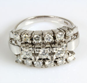 Ring, WG 585/000, 4 Brillanten ca. 1,3 ct tw-vsi/si, RW ca. 58