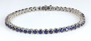 Armband, WG 750/000, 51 Saphire facettiert ca. 10 ct, klassisches Chaton Armband mit Seitenschnepper und Sicherungsklappe, L = 19,5 cm