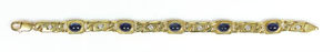Armband, GG 750/000, 5 Saphircab. ca. 9,5 ct, 6 Brillanten ca. 0,75 ct, tw/w-si/p, L = 20,3 cm, total 33,7 g