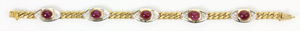 Armband, GG/WG 750/000, (nicht gepunzt-geprüft ! ), 30 Brillanten ca. 0,60 ct tw/w-si in WG gefaßt, 5 Rubincab ca. 12,5 ct, Kastenschloß mit Sicherheitsacht, L = 20 cm, total 35,7 g