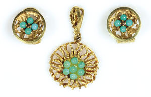 Lot: Ohrclips GG 585/000, Türkiskugeln, D = 12,5 mm, Anhänger, GG 333/000, 7 Türkiskugeln