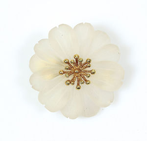 Brosche "BLÜTE", GG 333/000, geschnittene Bergkristallblüte, D = 29,5 mm