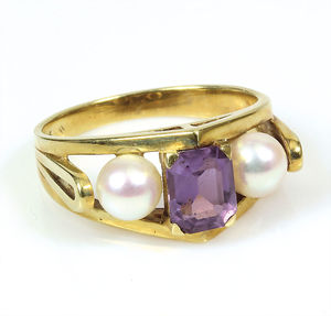 Ring, GG 585/000, Amethyst, 2 Akoja-Perlen, RW ca. 58,5