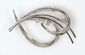 Brosche, WG 585/000, 3 Diamanten weiß ca. 0,075 ct, L = 45 mm