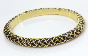 Schmaler, aber massiver Armreif von Lilly Pulitzer, USA (signiert). Schwarze Emaille-Auflage mit goldfarbenem Muster. D innen ca. 66 mm