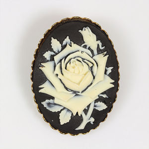 Schalclip, WEDGEWOOD England, Metall verg., auf schwarzem Glas abgesetzte Rose, 42 x 31 mm