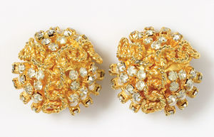 Ohrclips, Metall vergoldet, Strass u. Perlenimitation, D = 29 mm