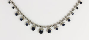 Collier, Metall, weißer und blauer Strass, L = 46 cm