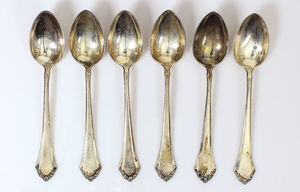 6 Kaffeelöffel, Silber 800/000, L = 13,3 cm