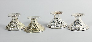 4 kleine Kerzenständer 1950/60 Jahre, Sterlingsilber 925/000, H = 33 mm, Füße kittgefüllt, oben im Rand graviert