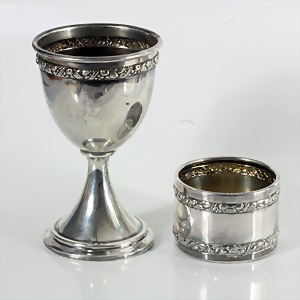 Lot: Taufgeschenk um 1910/20, Silber 800/000, WTB, 1 x kl. Eierbecher, H = 72 mm; 1 x kleiner Serviettenring, D = 35,8 mm,am Rand floraler Abschluß