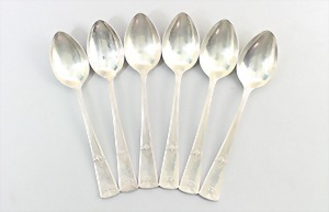 6 Kaffeelöffel JUGENDSTIL um 1900, WMF N, I/0, Entwurf ALBERT MAYER, versilbert, Monog: HB, L = 13,5 cm