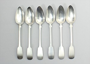 6 Suppenlöffel. 2. Hälfte 19. Jhd., 13 Lot, L = 23 cm, total 305,9 g