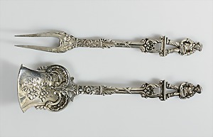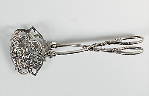 Gebäckzange, Silber 800/000, "Putto reitet auf einem Seetier", L = 15,5 cm