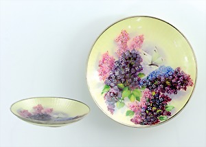kleines Schälchen, PFORZHEIM um 1910/20, Silber (geprüft), zartgelbes transluzides Emaille, gouillochiert, feine Blütendolden mit zartgrünen Blättern, mitten drin ein Schmetterling "KOHLWEISLING", Rückseite: zartgelbes transluzides Emaille, gouillochiert, sehr feine Arbeit ! D = 87,5 mm