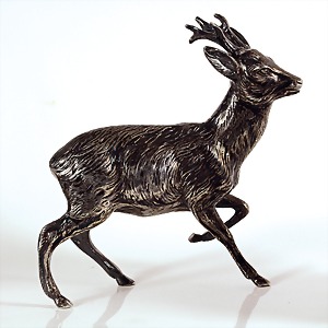 Hirsch mit Geweih, Silber 800/000, Hanau ?, plastisch schön ausgearbeitetes Tier, H = 92 mm, total 105,0 g